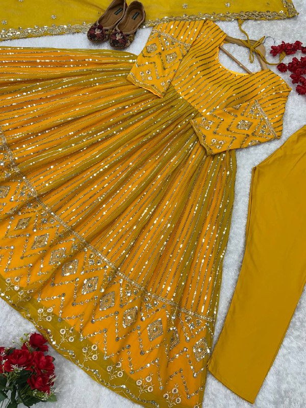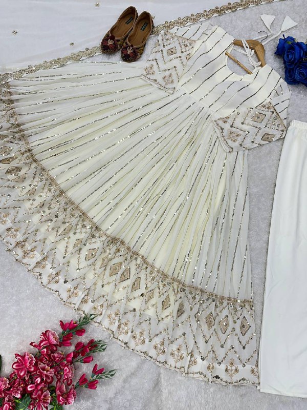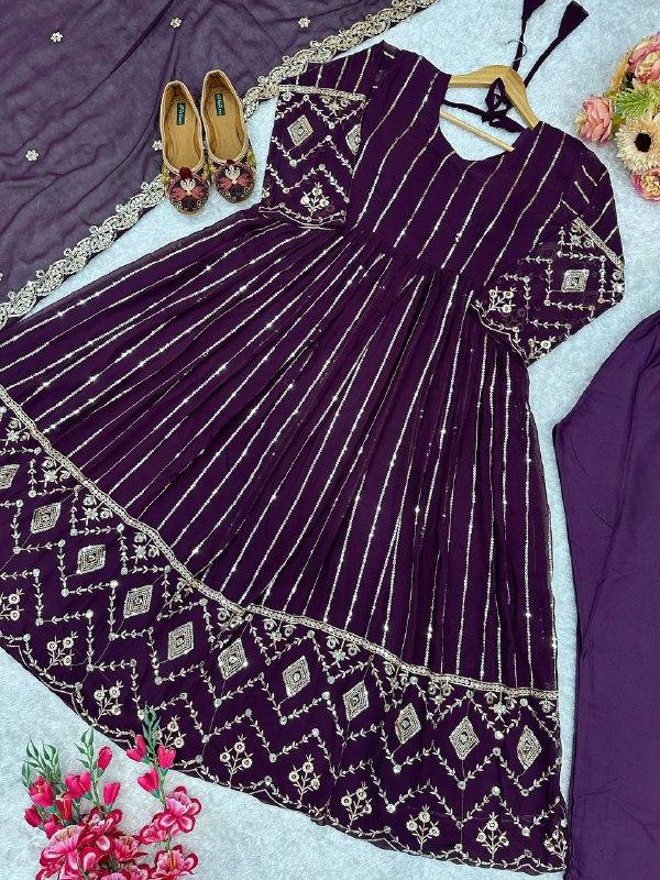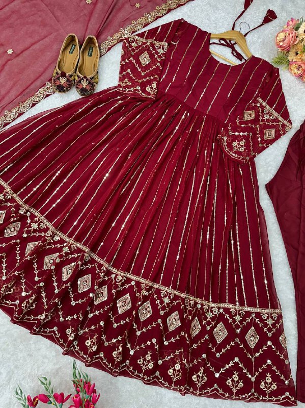 Perfect for weddings, festive gatherings, and special occasions, this fully stitched gown set offers both comfort and sophistication.