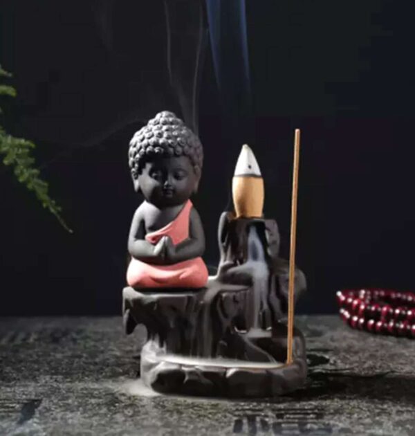 Meditating Monk Buddha Smoke Backflow Cone Incense Holder Decorative Showpiece with 10 Free Smoke Backflow Scented Cone Incenses